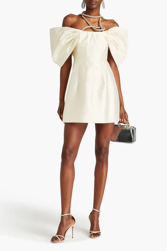 Lexie off-shoulder mini-jurk van wol en zijde met versieringen